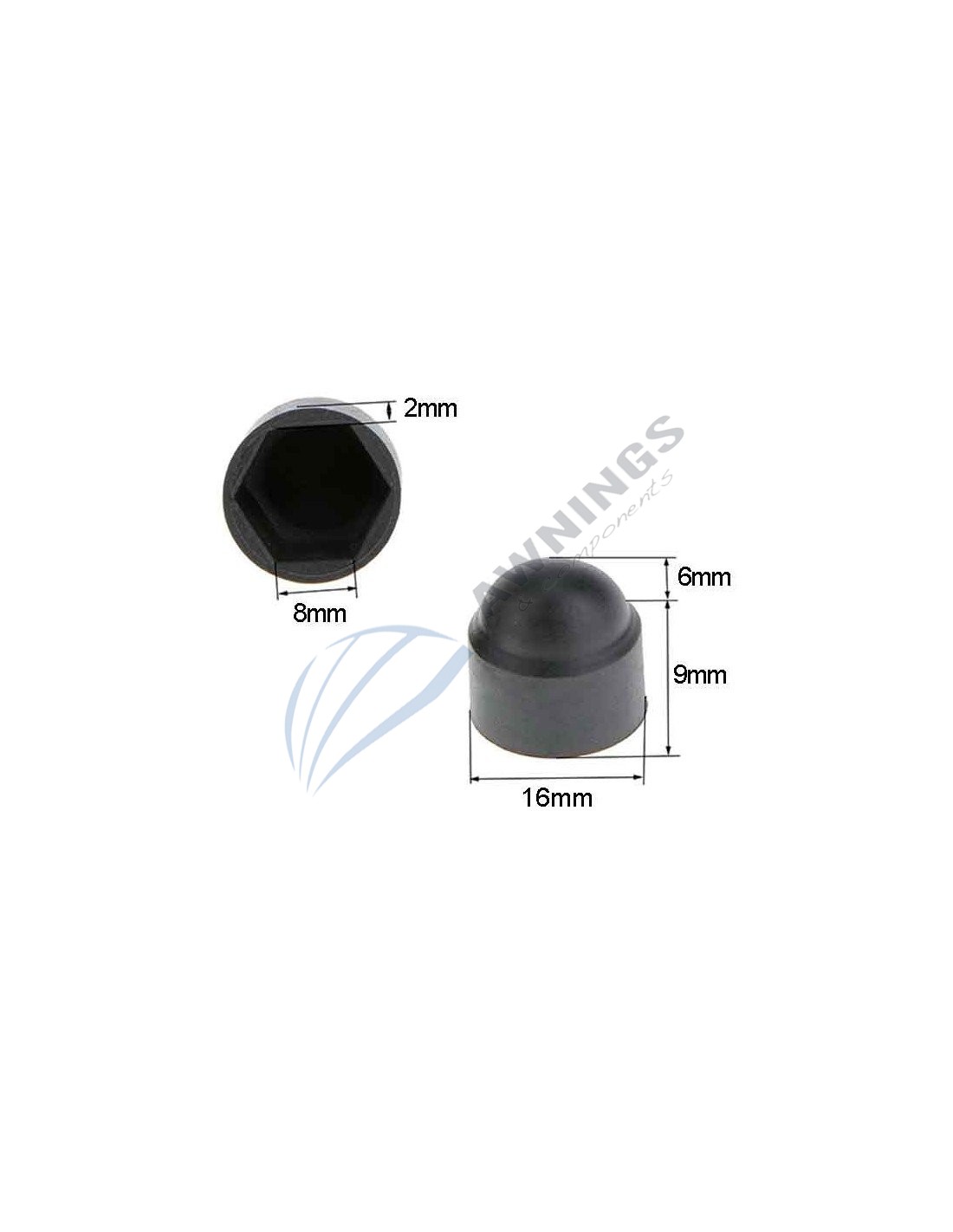 1 Tapón embellecedor de plástico en negro, para tornillo o protección de tuerca hexagonal para tornillo de toldo de metrica 8mm.