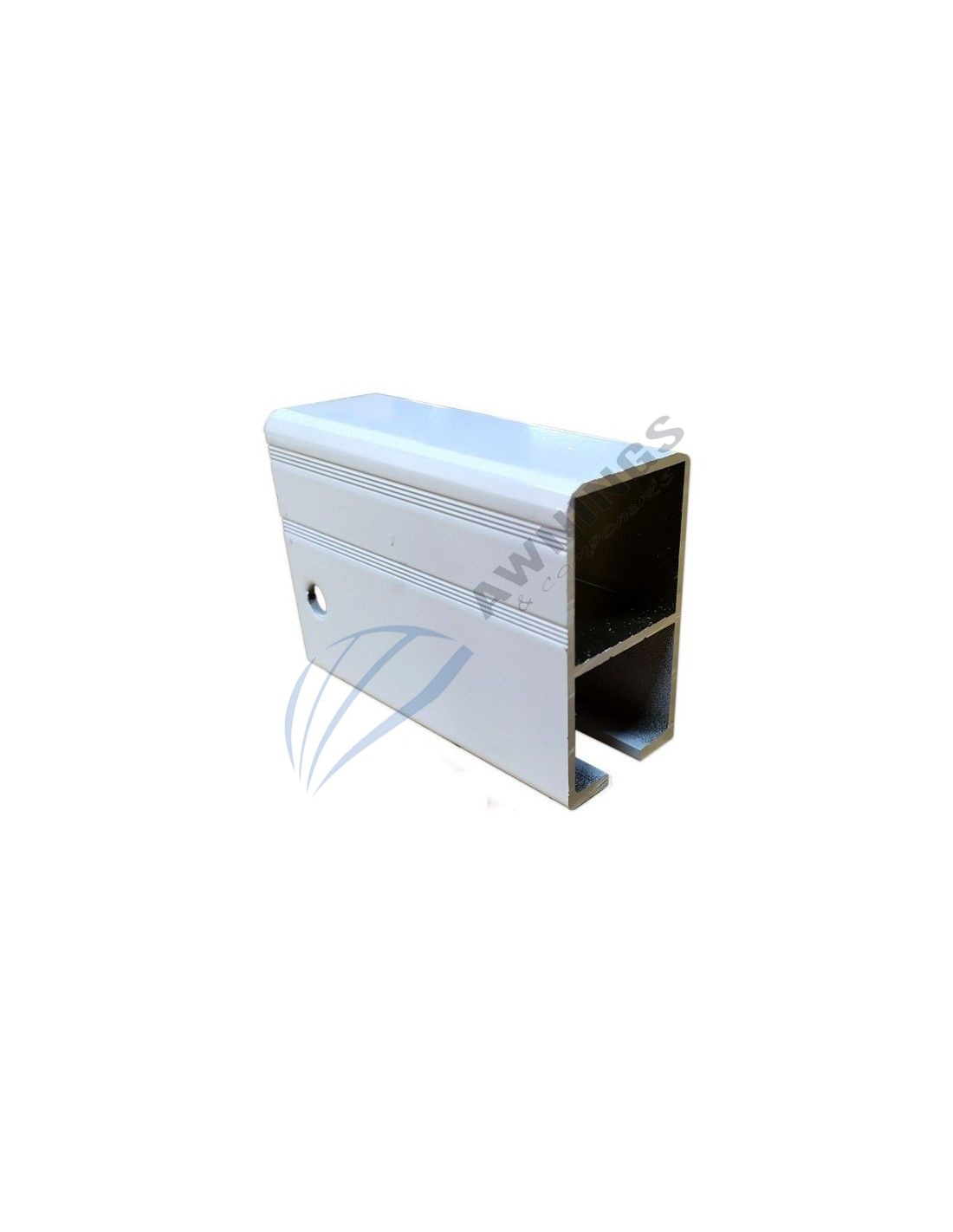 1 Barra de 5.85 m de perfil guía para toldo corredero , de aluminio lacado en blanco de 65x35mm .
