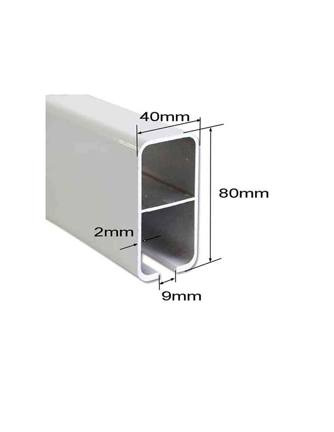 1 barre de 5 m. de profil de guidage en aluminium laqué blanc, marron et vert pour store plat, 80 mm de haut par 40 mm de large et 2 mm d'épaisseur.