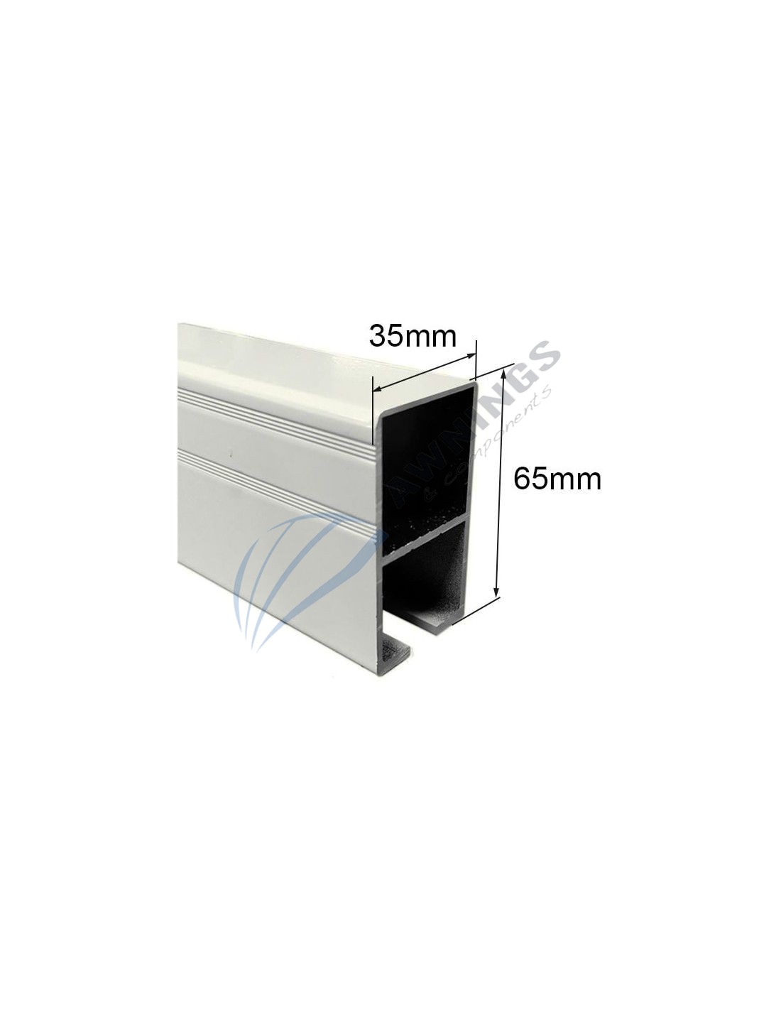 1 Barra de 5,85 m de perfil guia para toldo de correr, em alumínio lacado a branco 65x35mm